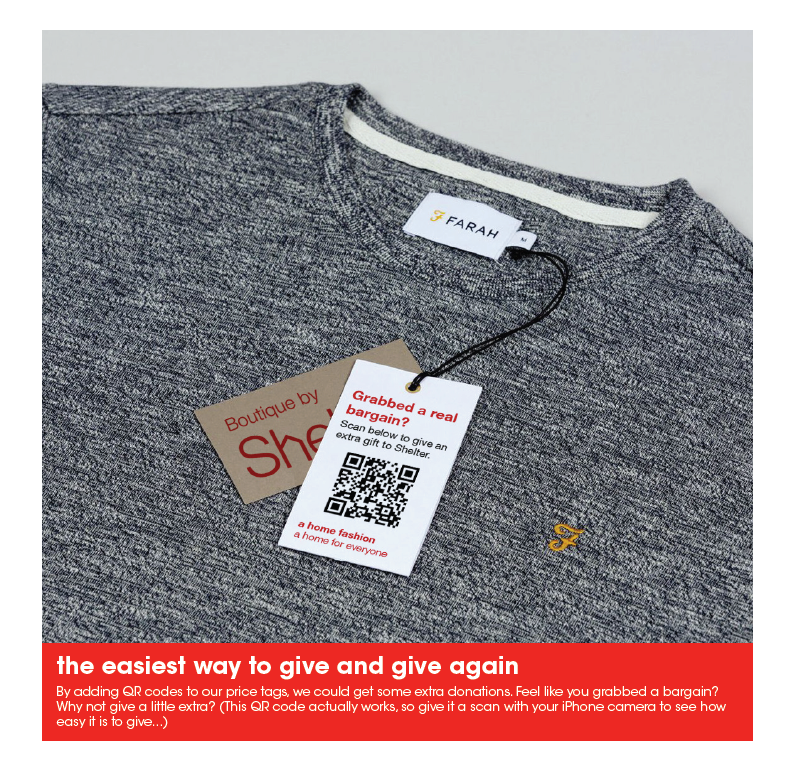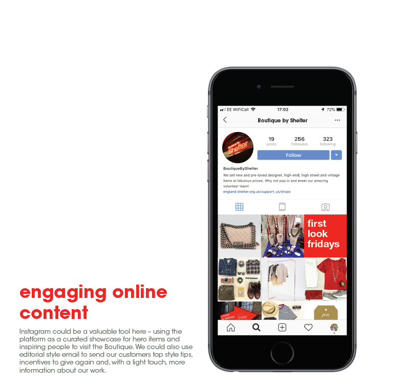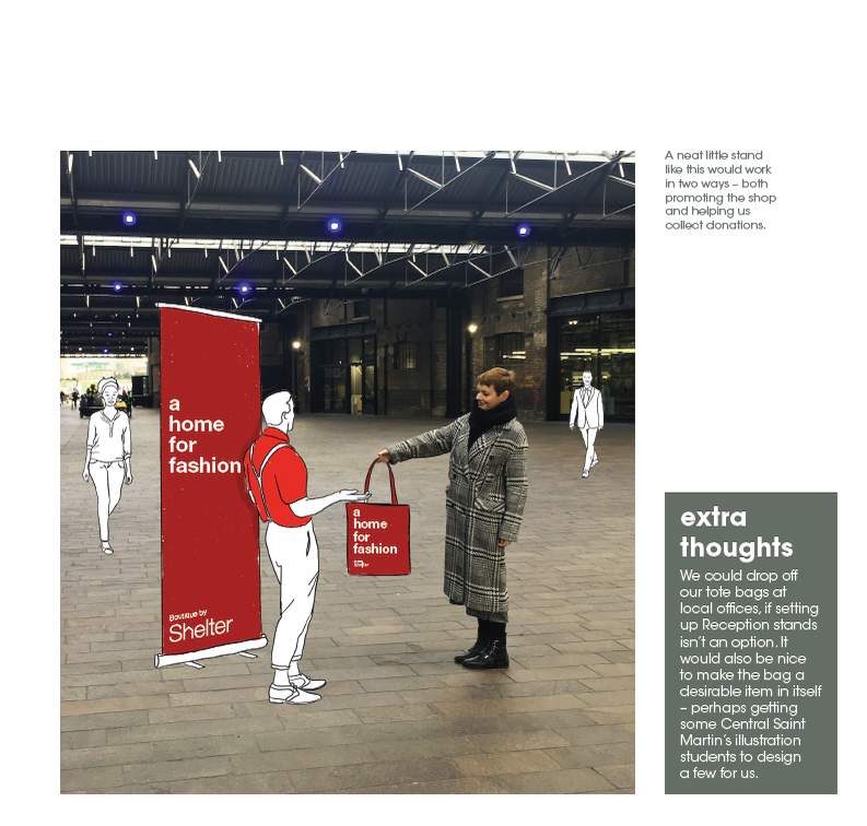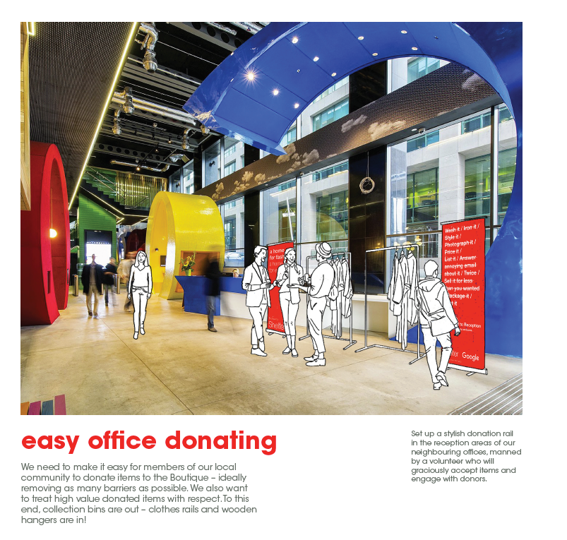 We developed ideas to tackle lower footfall, fewer ‘over-the-door’ donations and higher quality of stock needed, as well as digital engagement and extra POS donations.
