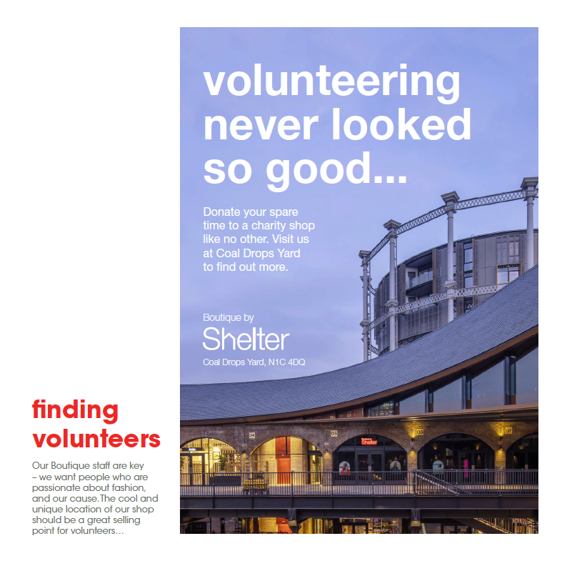 Shelter were given the opportunity to have a boutique charity shop located in the new and exclusive Kings Cross shopping area, Coal Drops Yard.