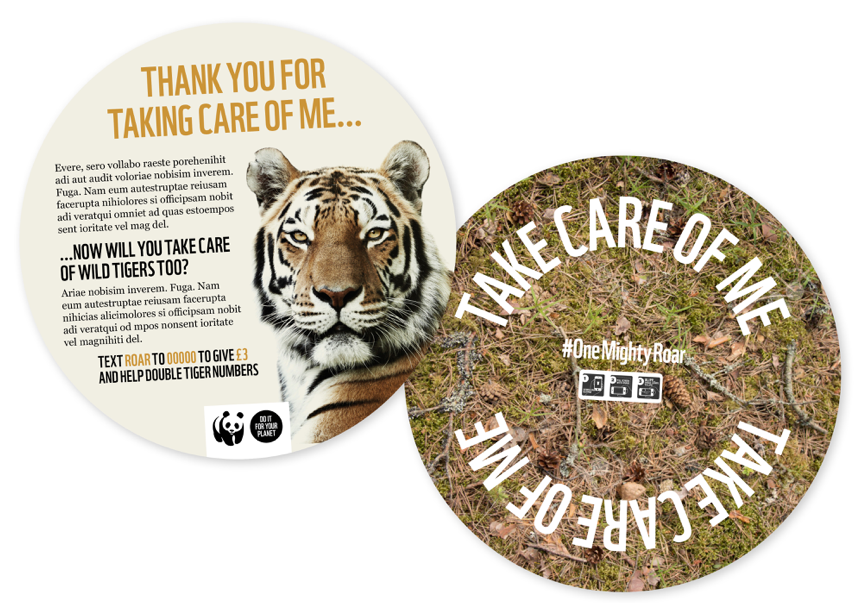 We wanted people to take the tigers. That's why each one came attached to a card with an ask and clear CTA. The card also activated AR when scanned with a phone, showing a tiger being hunted in the wild.