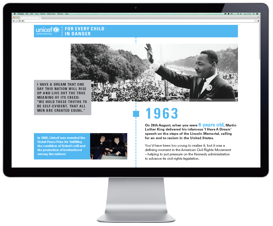 To build engagement before our big ask, we gave all potential donors their own personalised timeline, showing their place alongside BIG moments in recent history.