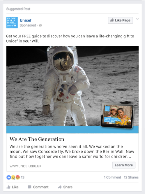 Unicef wanted to inspire baby boomers to leave a generous gift in their Will.