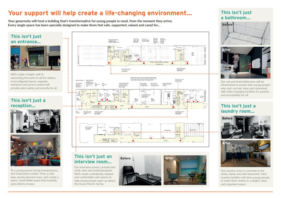 Our informative project proposal, making it clear to the donor what each new bathroom, laundry room or reception area would mean to the homeless young people of Manchester...